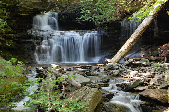 Most of the waterfalls in Ricketts Glen State Park are taller than R.B. Ricketts Falls, but this waterfall has something great going for it…it’s actually two waterfalls for the price of one. If you look closely at the picture, you’ll notice that there are two different falls. One is on the main stream, while the other is from a tributary that merges into the main river. It’s extremely beatiful! I had a difficult time photographing each of the falls separately, but I think it’s great to see both waterfalls together.
