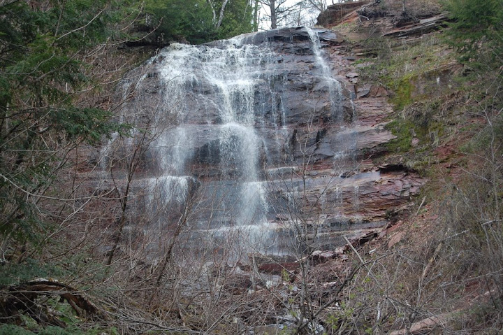In a previous post, I talked about getting a better view of Hungarian Gorge Falls on a tributary of the Hungarian River. Lower Hungarian Falls is right nearby. I mention this because there are different ways to view the falls. One way is to view the falls from above, though this is the least exciting view. The second option is to apparently find a trail near the crest of the falls that leads to a better view. That option seemed rather dangerous, as the area around the falls is EXTREMELY steep. The third option, the one that I tried, was not terribly dangerous, just rather inconvenient. I found another trail that lead down to the Hungarian River, and then followed the river upstream. This option allowed me to view the tributary waterfall and then Lower Hungarian Falls. That is where I took the picture that is posted below…