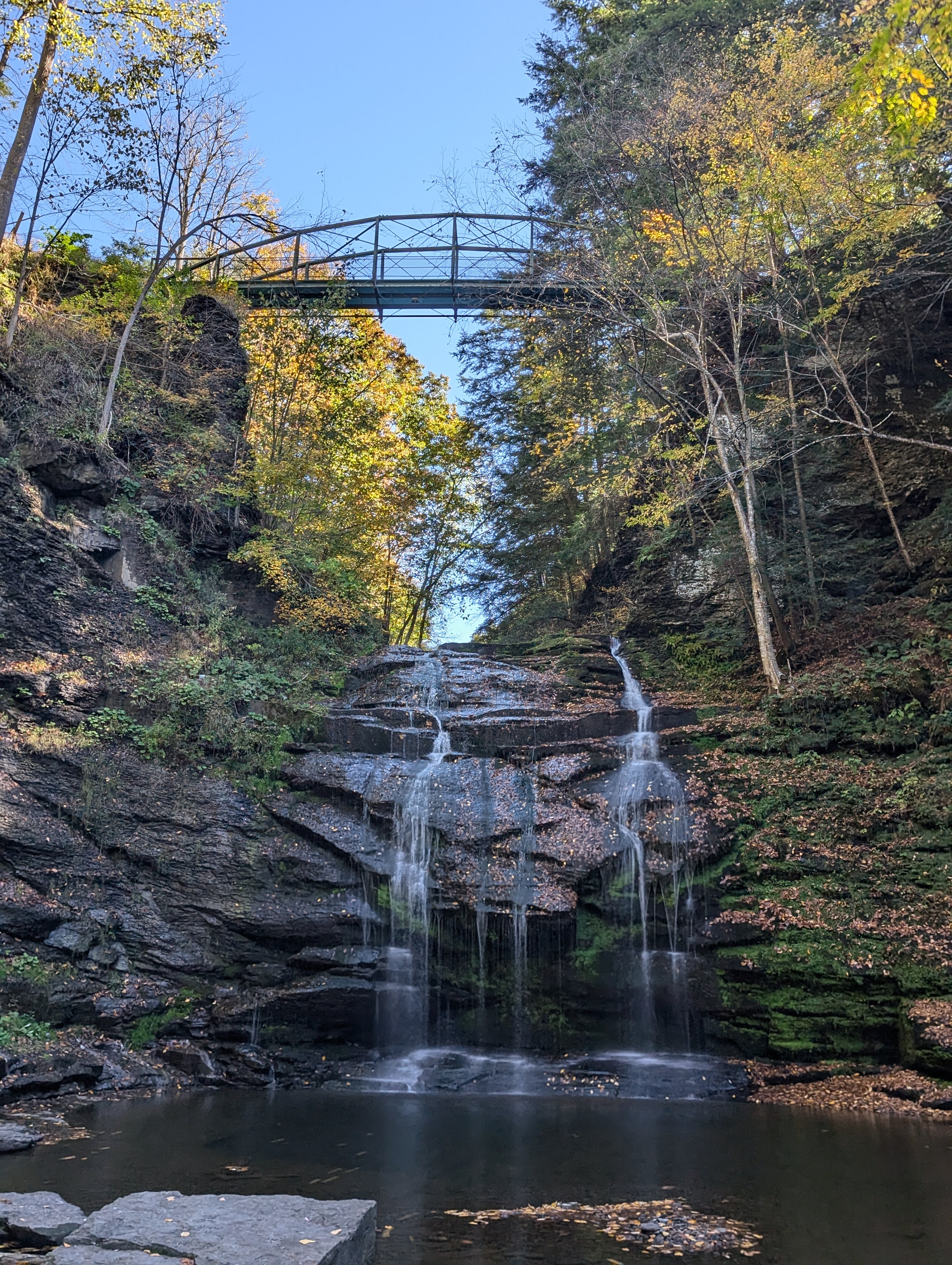 And the waterfall is nice, but it’s honestly the scenery around the waterfall that adds to the scene. The bridge above looks really awesome with Rexford Falls below. And while the fall leaf colors hadn’t changed significantly, there were some oranges and yellows popping, visible in the gorge.